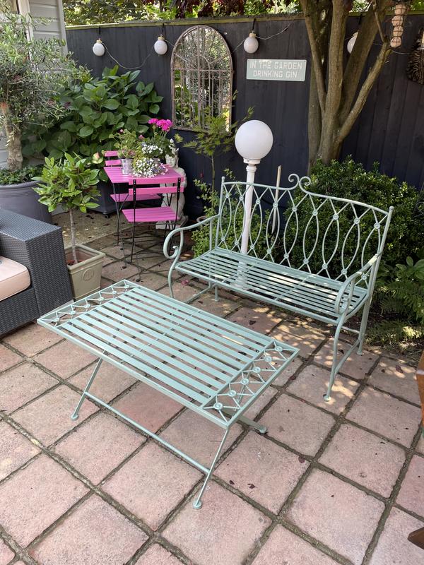 Product Name: Sage green metal garden bench on sale