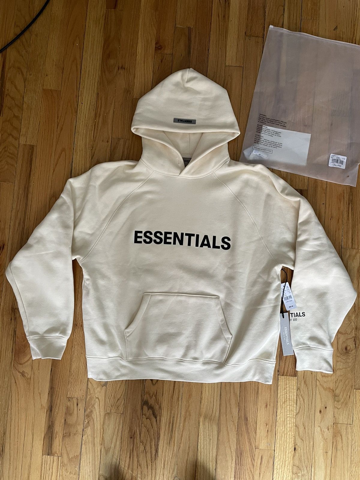 Product Name: Fear of god essentials 3d silicon applique pullover hoodie buttercrea on sale