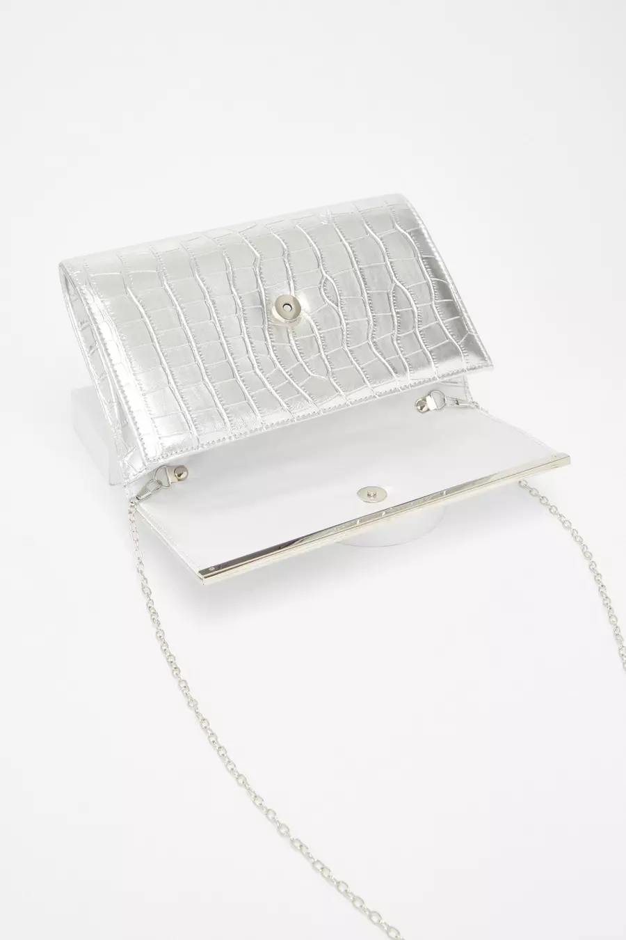 Product Name: Silver croc clutch bag on sale
